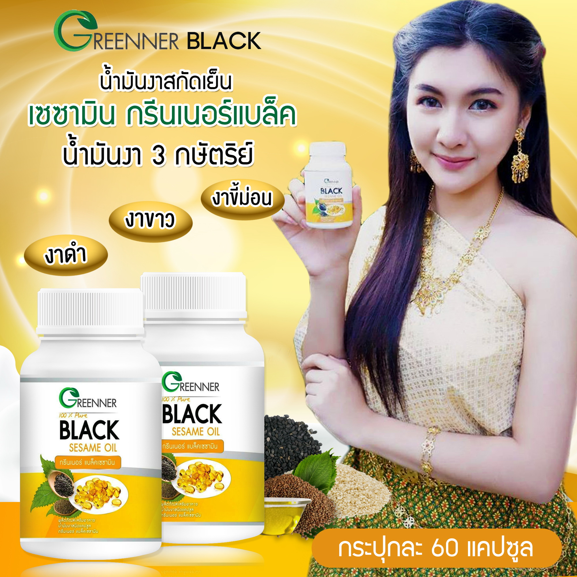 น้ำมันงา1เม็ดได้งา 3 ชนิด เซซามินกรีนเนอร์แบล็ก